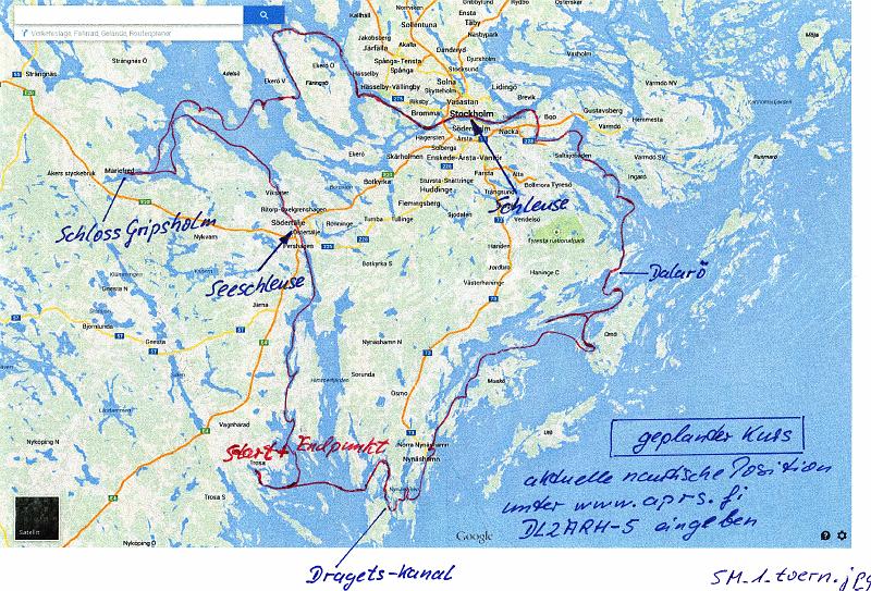 Ein Funkbake sendet ständig unsere nautische Position und stellt sie ins Internet auf eine Karte. Das System ist während der Fahrten eingeschalten.