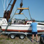 Das Boot wird per Trailer bis zur Insel Töplitz (bei Potsdam) gefahren und dort eingesetzt. Von den Gewässern südlich Berlin stehen viele Routen für einen Urlaubstörn oder ein verlängertes Wochenende zur Verfügung. Ferne Reviere fahren wir auch so per Achse an und slippen dort.